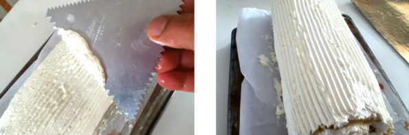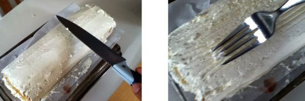 - You can replace the spatula with a large knife. Decorate with the back of the fork by making parallel lines.