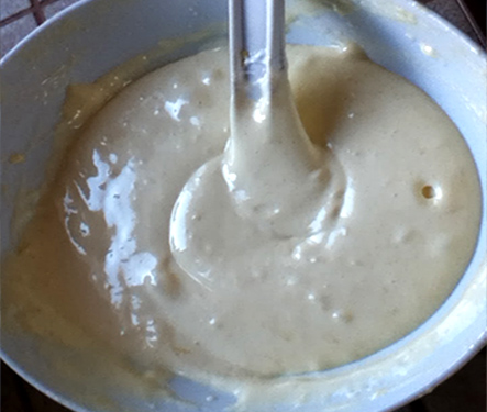 Mix with the mixer until you have a cream, then add the two tablespoons of warm water and mix well.